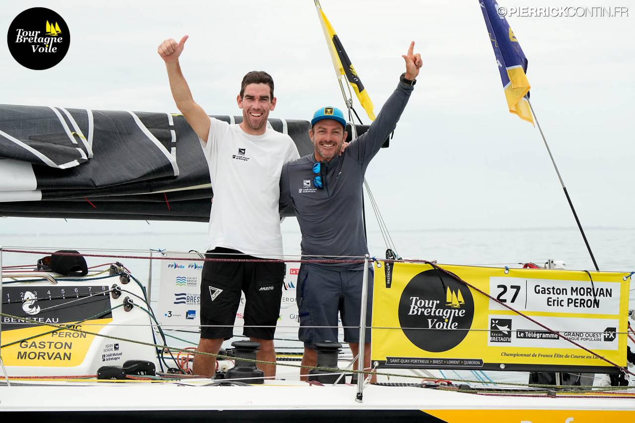 Hier après-midi, les arrivées se sont enchaînées en baie de Quiberon. En tête du Tour de Bretagne pour ce parcours offshore entre Lorient et Quiberon, Gaston Morvan et Eric Peron sur Région Bretagne CMB – Performance à 16h05’20’’. Suivis de près par les tandems Région Normandie et MonAtoutÉnergie.fr, seules 52 secondes séparent le podium. Du côté du Tour Voile, l’équipage Marine Nationale – Fondation de la Mer a franchi la ligne en première position à 16h36’22’’, non loin de ses poursuivants Dunkerque Voile et Equipe Bretagne Jeunes Habitable. Les points se resserrent au classement général du Tour Voile qui reste inchangé, tandis que les cartes ont été redistribuées pour le trio en tête hier matin sur le Tour de Bretagne. Le parcours inshore de ce matin, qui sera le dernier pour les 25 duos, sera déterminant pour connaître le grand vainqueur de cette 14e édition !